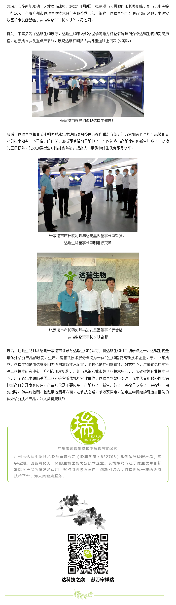 張家港市人民政府市長蔡劍峰、副市長張慶一行蒞臨達(dá)瑞生物調(diào)研參觀