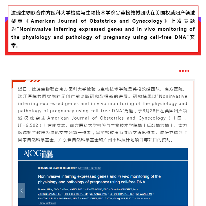 喜訊:達瑞生物無創(chuàng)產(chǎn)前診斷研究取得新進展!