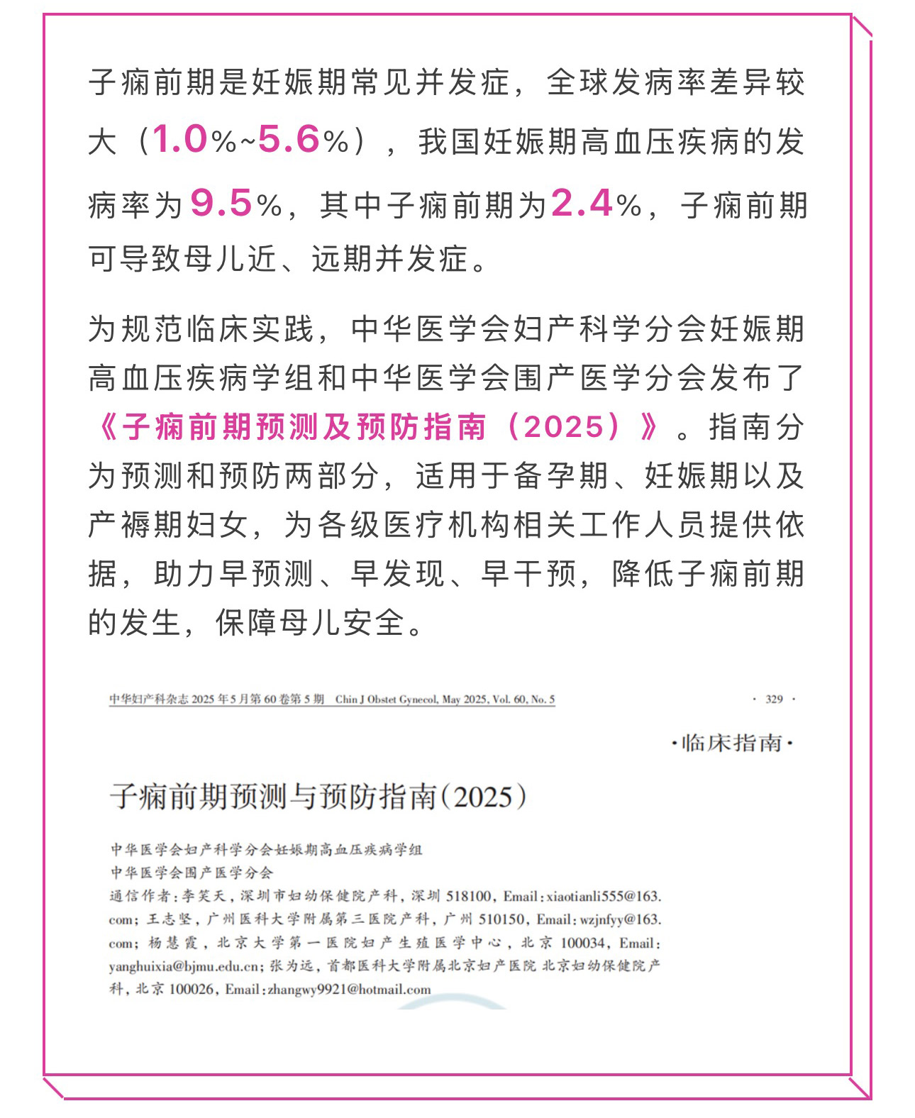 指南速遞|子癇前期預(yù)測及預(yù)防指南(2025)解讀